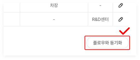 TIP. 만약 플로우에 새로 추가된 직원이 보이지 않는다면, 우측 아래쪽의 '플로우와 동기화'를 클릭해주세요.