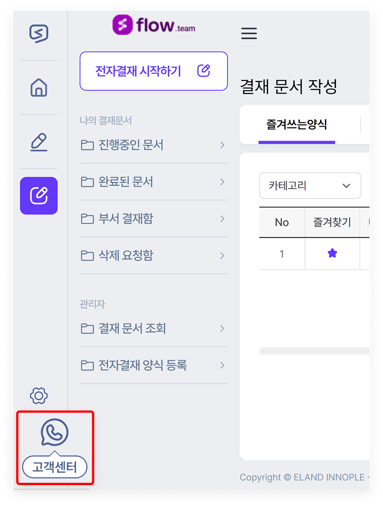TIP. 전자결재 및 전자계약은 전담팀을 통해 문의 대응이 이뤄지고 있습니다. 화면 좌측 하단의 '고객센터'를 눌러 접수하면, 전담팀이 최대한 빠르고 정확한 도움을 드립니다.