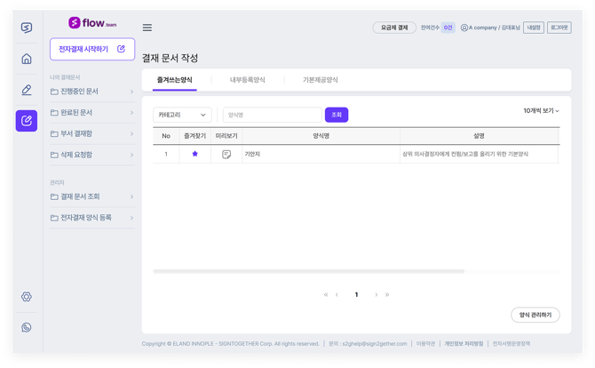 플로우에서 이용할 수 있는 기본 전자결재 서비스는 무료로 제공됩니다.