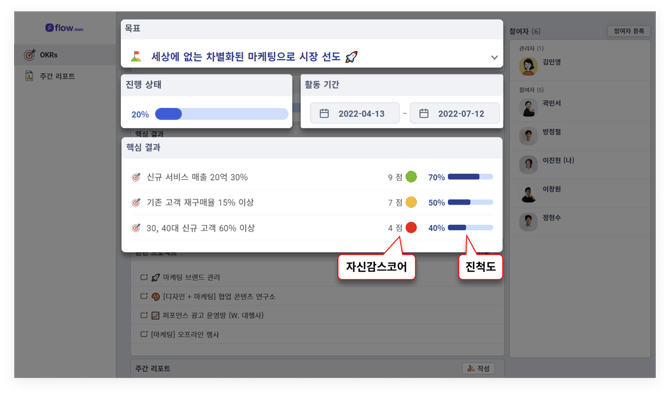 - 진척도 : 각 핵심 결과별 진척도를 의미합니다.