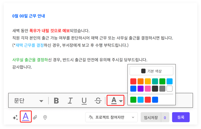 글 크기 / 글 서식 / 글 색상 등을 활용해 중요한 내용을 강조할 수 있습니다.