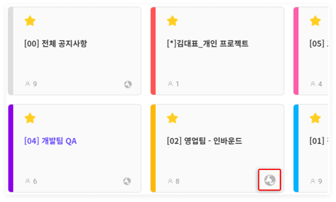 - '내 프로젝트' 화면에서 '지구본 모양 아이콘'으로 구분이 가능합니다.