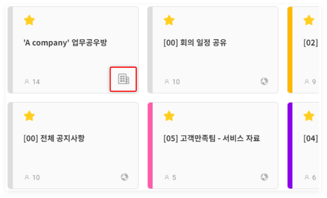 - '내 프로젝트' 화면에서는 '빌딩 모양 아이콘'으로 구분할 수 있습니다.