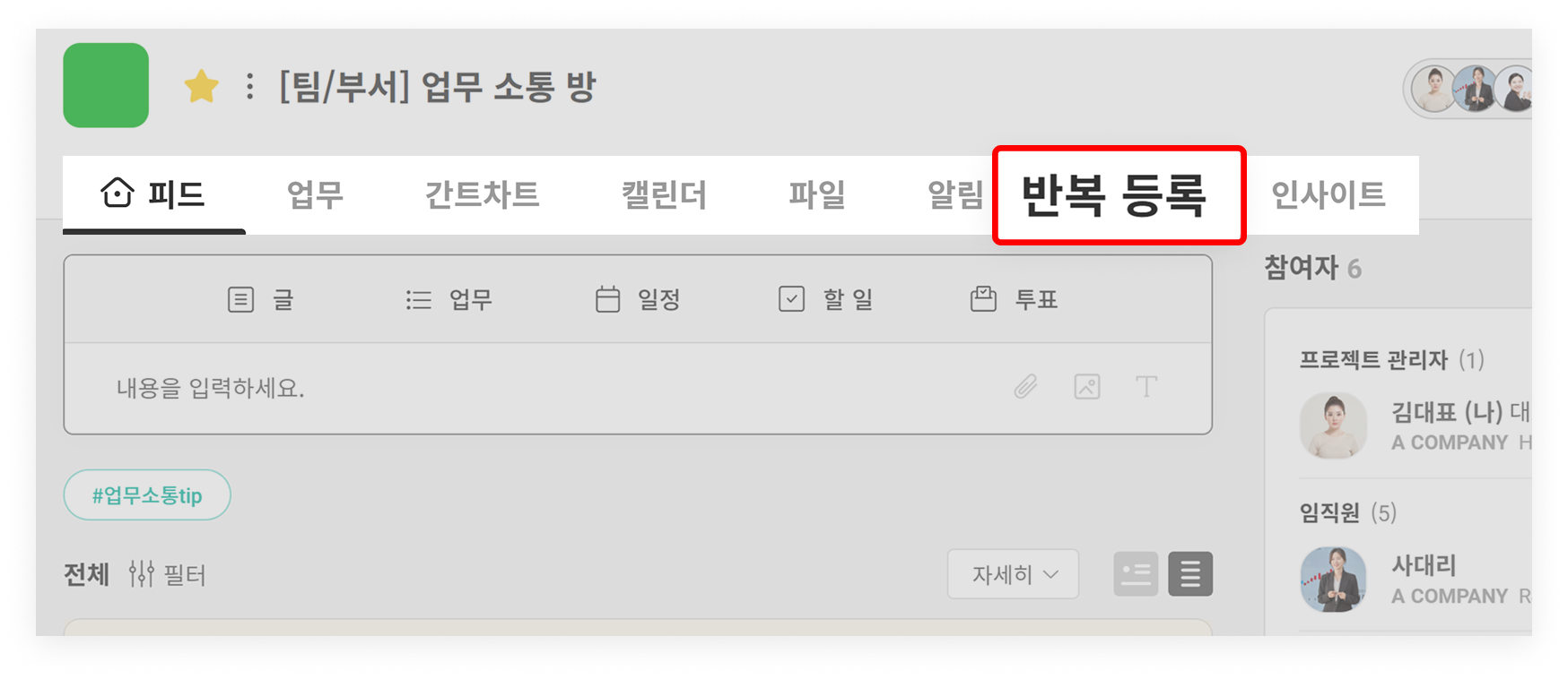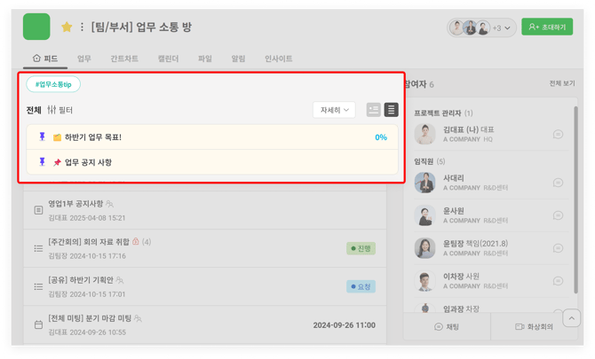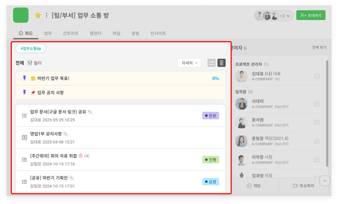 6. 프로젝트 내 '업무/일정/파일/알림/인사이트' 모아보기 탭