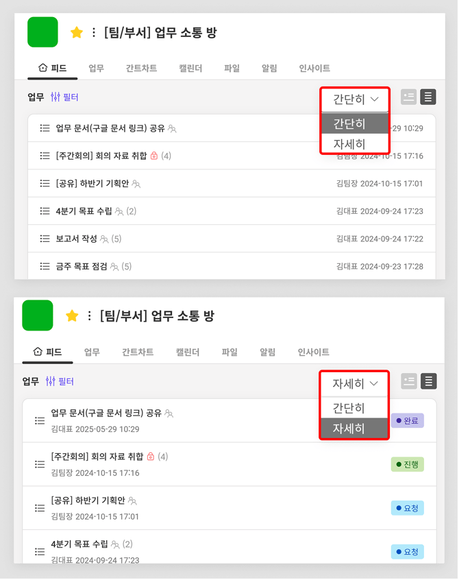 ① 간단히 / 자세히 보기
