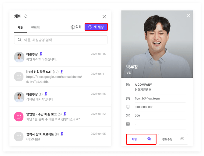 플로우 내 채팅에는 일반 채팅과 프로젝트 채팅 2가지 종류가 존재합니다. 채팅방 특징 및 운영 방법에 따라 상황에 맞게 잘 활용해보세요!