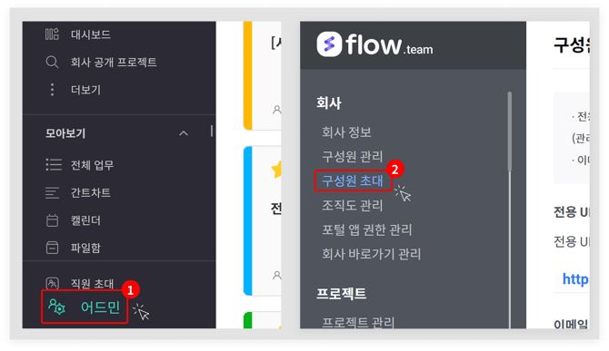 1. 플로우 메인 화면에서 '직원 초대' 진행하기