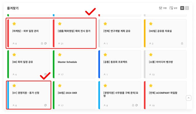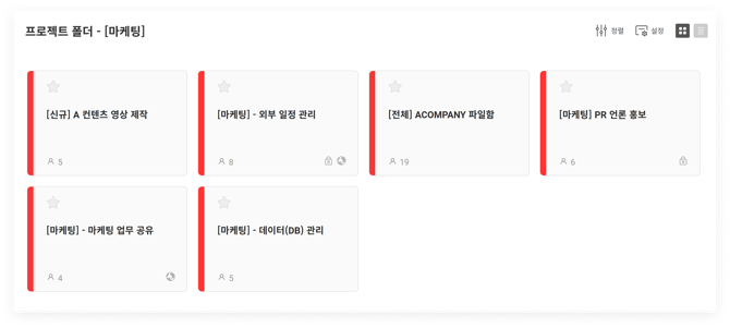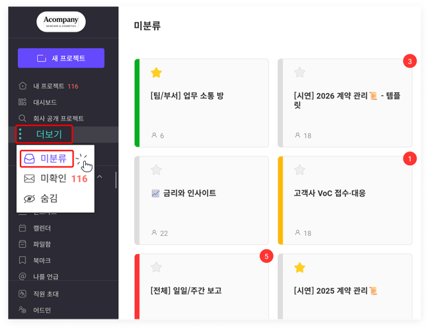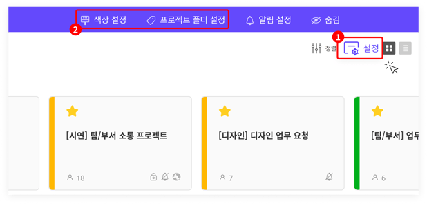 프로젝트 폴더와 색상 설정을 동시에 활용하여, 현재 참여 중인 프로젝트를 나만의 기준으로 쉽게 구분하고 관리할 수 있습니다. (프로젝트 폴더 설정법 바로가기)