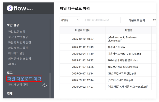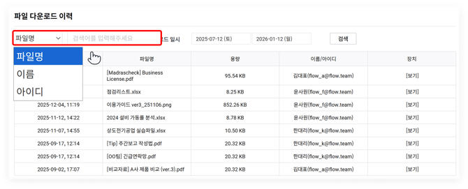 회사 관리자라면 우리 회사 직원들의 파일 다운로드 이력을 전체적으로 확인할 수 있습니다.