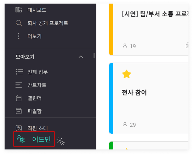 '어드민'은 우리 회사의 플로우 관리자만 확인 및 진입이 가능한 메뉴입니다. 플로우 관리자는 현재 관리자가 추가로 지정하거나 해제할 수 있습니다. (관리자 추가 지정 방법 바로가기)