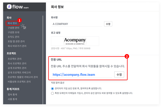 - 회사 URL은 참여하려는 회사 측의 관리자에게 문의하면 확인 가능합니다.