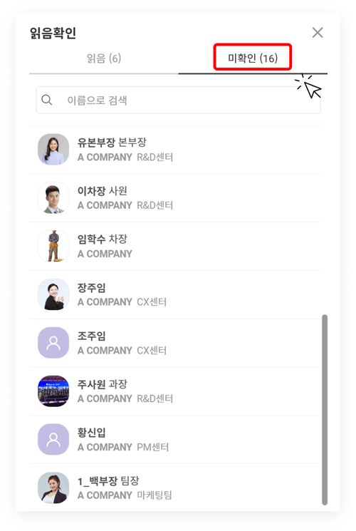 아직 읽지 않은 사람의 목록을 확인할 수 있습니다.