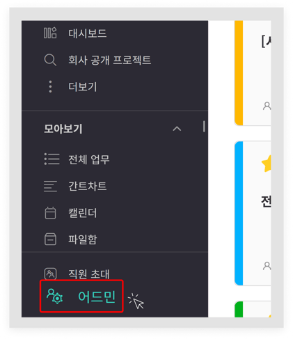 어드민 메뉴 버튼은 전체 관리자만 확인이 가능합니다.
