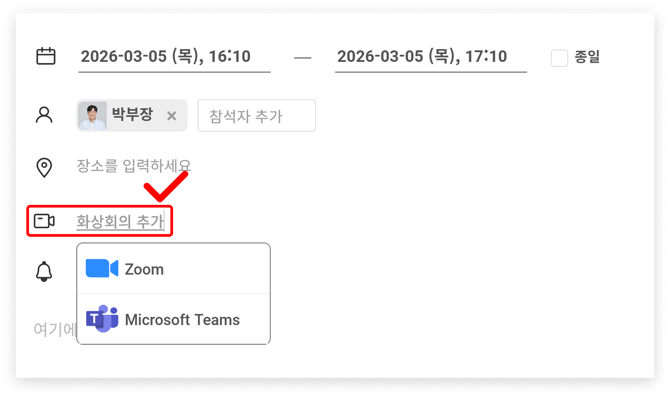 2. 화상 회의가 포함된 일정 등록하기