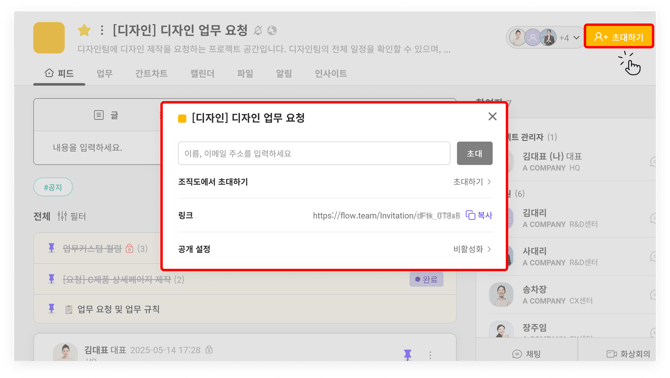 프로젝트 - 참여자 초대 방법 자세히 보기