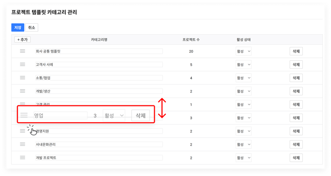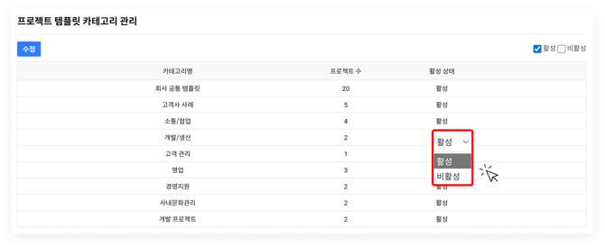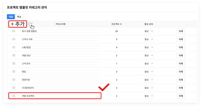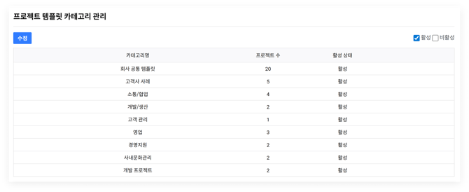 회사 내 플로우 관리자는 프로젝트 템플릿 카테고리를 추가하거나 수정, 변경할 수 있습니다.