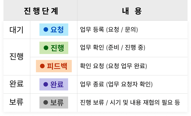 < 업무 진행 단계 기본 규칙(개별 커스텀 가능) >
