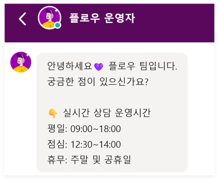 채팅 문의를 통해 기업명과 성함을 전달해주시면, 개인 정보 확인 이후 아이디를 안내 드리고 있습니다. 플로우 운영자가 가입 당시 입력하신 정보를 확인해 드립니다.