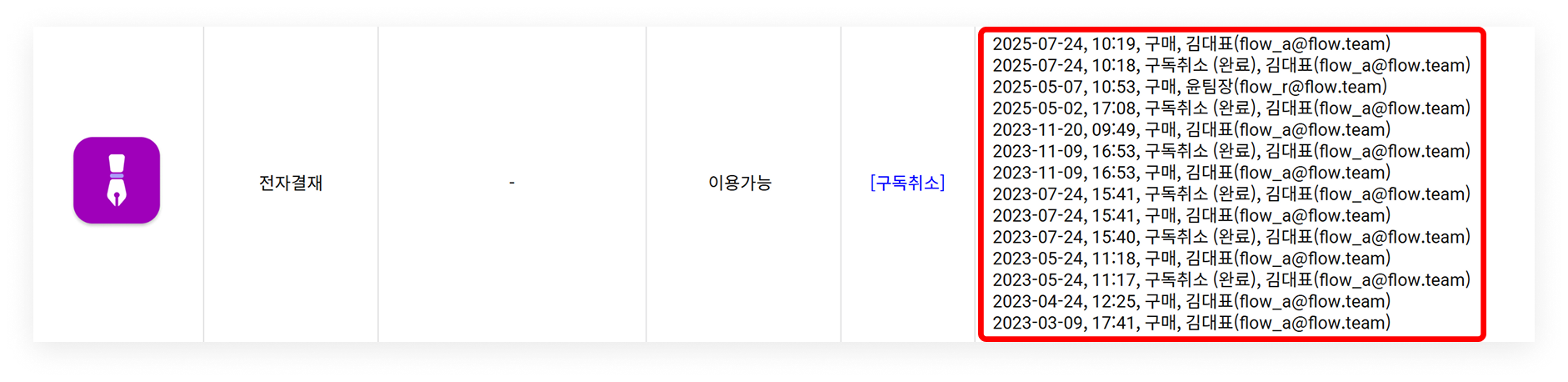 2. 구매 / 구독 취소 이력 확인