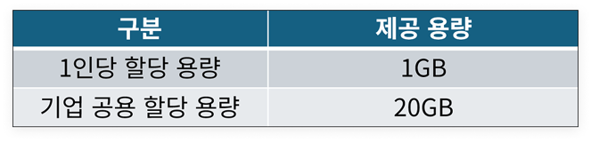 - 1인당 할당되는 용량은 1GB 미만으로 설정이 불가합니다.