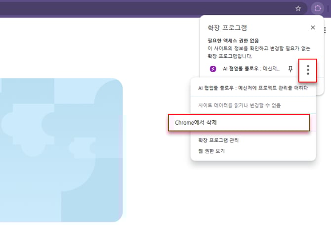 5) 크롬에서 확장 프로그램을 제거하려면 Chrome 웹 스토어로 이동하여 제거하거나 웹 주소 표시줄 옆에 있는 확장 프로그램 아이콘에서 직접 삭제할 수 있습니다.