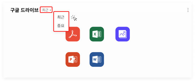 또한 최근/중요 순으로 드라이브 내 문서의 노출 순서 정렬이 가능합니다.