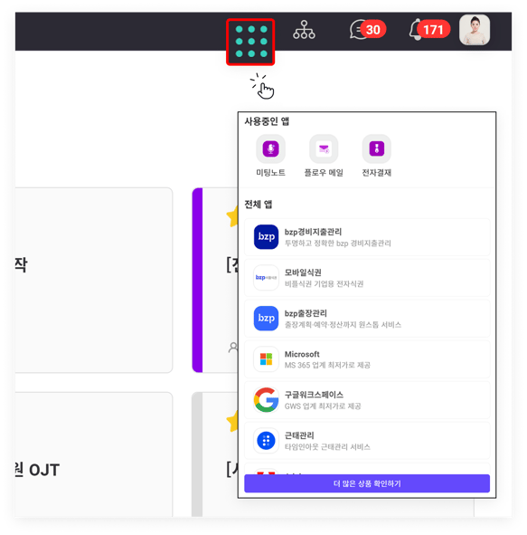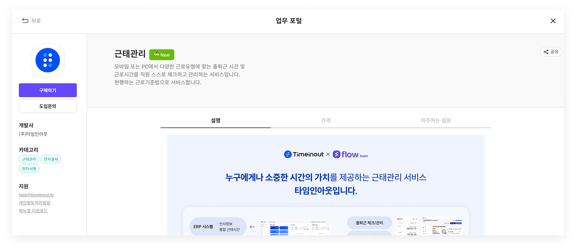 업무 포털에서 부가 서비스 앱 구매 방법(근태 관리, 전자결재 등)