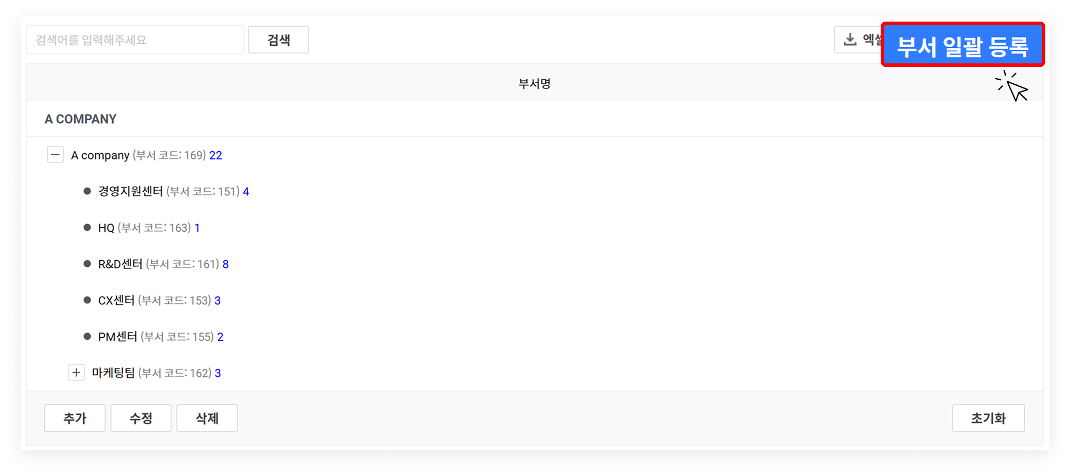 2. 부서 일괄 등록하기