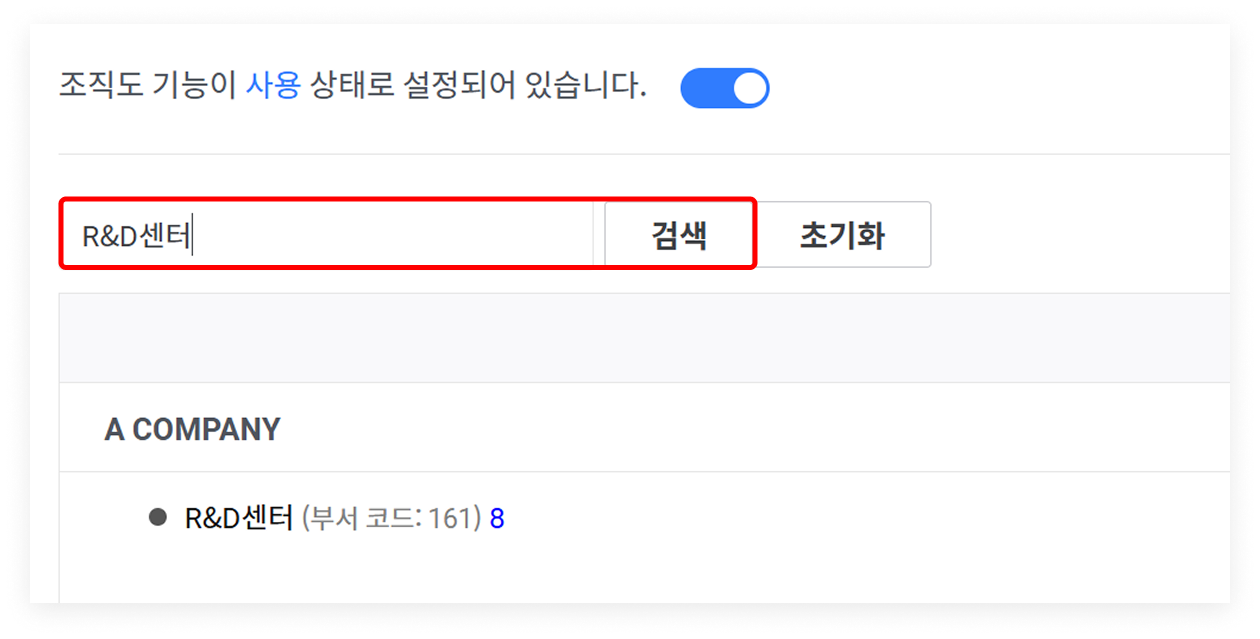 조직도 기능을 활성화해야 부서 정보를 추가하고 수정할 수 있습니다.